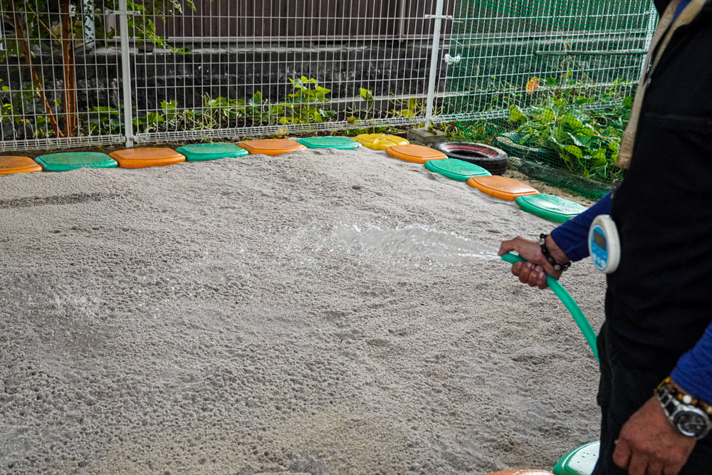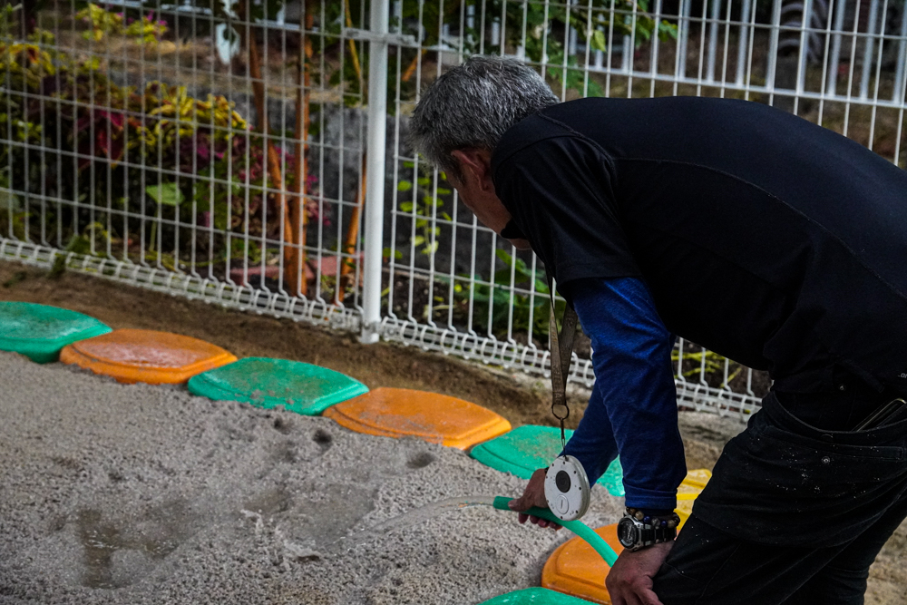 弊社は砂へのこだわりはもちろんですが、砂場周りの環境整備も十分に行います。例えば、砂場を囲むフェンス・砂場の縁など砂場の印象を大きく左右する箇所にも最大限の安全性を第一に施工しております。施工させていただいた園や保護者の方からの「こんな所まで気を使ってるんですね!凄いですね!」とお喜びの声を多数いただいておりますのが弊社の誇りです。